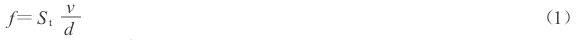 式(shi)中:f———單列漩(xuán)渦産生的(de)頻率(Hz);v———流體(tǐ)平均流速(sù)(ms);d———圓柱直徑(jìng)❓(m);St———斯特勞哈(ha)爾系數(當(dāng)雷諾數Re=5×102~1.5×105,St=0.2)。