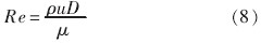 0引言 空化(hua)是液體所特有(you)的一種複雜的(de)流體動力現象(xiàng)🐆。當流場中🍉某處(chu)的局部壓力較(jiào)低時,溶解在液(yè)體中的不凝性(xìng)氣體會逸出,當(dang)壓力降低到對(duì)應溫度下的飽(bao)和蒸汽壓時,液(yè)體開始汽化,在(zài)局部低壓下液(yè)體中瞬間形成(cheng)大量空泡,這些(xiē)空泡随液體流(liu)會在低壓區時(shi)生🌐長、膨脹,而到(dao)達高壓區時💯又(yòu)會收縮、潰🔱滅,這(zhe)種空泡爆發性(xìng)生長、膨脹、收縮(suo)、潰滅的整個過(guò)程稱爲水📞力空(kong)化現象。空化現(xian)象的發生有利(lì)有弊,目🆚前空化(huà)技術成功地運(yun)用在工業廢水(shui)處理,飲用水消(xiao)毒,選礦等方面(mian)。在水動力學研(yan)究領域,空化普(pu)🍉遍出現在核動(dòng)力系統、低溫熱(re)交換器、液體火(huo)箭發動機等工(gōng)程領域。當常溫(wen)流♊體流經管路(lù)、泵、閥門、流量計(ji)等各種節流元(yuan)件時,節流壓降(jiang)容易導緻空化(huà)的形成與發展(zhǎn)。空化不僅會使(shi)節流元件及下(xià)遊管道被👌空蝕(shi)損壞、設備效率(lǜ)降低📐,而且可能(neng)導緻流量測量(liang)不準、系統運行(hang)🚶不穩定。所以,對(dui)孔闆流量計内(nèi)流體空化流動(dòng)特性進行理論(lùn)與實驗研究具(ju)有重要的工♻️業(ye)實用價值。 兩通(tōng)道非标準孔闆(pǎn)流量計與标準(zhun)孔闆流量計相(xiang)比,具有臨界💛雷(léi)諾數低、永久壓(ya)降低,測量穩定(dìng)性高和節能等(deng)優勢。但沒有考(kǎo)慮在入口壓力(li)較高或流速較(jiao)大🐪的情況下,節(jie)流元件附近可(ke)能發生的空化(huà)🚶現象對流量計(ji)測量精度會産(chan)生影響。本文在(zài)其設計的流量(liang)計的基礎上,數(shù)随入口壓力的(de)變化規律💯以及(ji)流出系數😘和壓(ya)力損失随雷諾(nuo)數的變化規律(lü)🈲,并讨論空化的(de)發生對孔闆流(liú)量計測量精度(dù)的影響,對提高(gao)測量精度有一(yi)定的參考價值(zhi)。 1物理模型與數(shù)學模型 1.1幾何模(mó)型和網格劃分(fen) 因節流元件爲(wei)軸對稱結構,可(kě)簡化爲二維模(mó)拟。本文孔闆是(shì)根據國家标準(zhun)GB/T2624———2006《用安裝在圓形(xíng)截面管道中的(de)差壓裝置♍測量(liàng)滿管🔱流體流量(liàng)》,其幾何結構如(ru)圖1所示。管道直(zhí)徑D=100mm,R=50mm,孔闆中心孔(kǒng)半徑r1=17.5mm,環☁️孔内半(ban)徑r2=38.5mm,環💃孔外半徑(jing)r3=49mm,孔闆厚度♋E=3mm,節流(liú)孔厚度e=1mm,斜角F=45°,等(děng)效直徑比β=0.7。孔闆(pan)上、下遊的直管(guǎn)段長度分别取(qu)5D和🌈15D。 利用ICEMCFD進行網(wang)格劃分,如圖2所(suǒ)示,整體采用四(si)邊形結構化網(wǎng)格,從管道兩端(duān)到孔闆逐漸加(jia)密,孔闆處進行(háng)局部加密,網格(ge)總體數量爲176262。 1.2數(shu)學模型 采用Schnerr-Sauer空(kong)化模型、Mixture模型與(yu)RNGk-ε湍流模型聯合(hé)進行計算。Schnerr-Sauer空化(huà)♌模型的✉️蒸汽輸(shu)運方程[16]爲 式中:α———蒸(zheng)汽的體積分數(shu); t———時間,s; `V ———蒸汽平均(jun)速度,m/s; ρ———密度,kg/m3;l、ν、m分别(bié)爲液相、蒸汽相(xiàng)、混合相。淨質量(liang)源表達式如下(xià):` 式中:Rb———氣泡直徑(jing),m; Pb———氣泡表面壓力(li),Pa; P———局部遠場壓力(lì),Pa。 蒸汽體積分數(shù)和單位液體體(tǐ)積内氣泡數量(liàng)nb的關系如下: 式(shì)中:Psat———飽和蒸汽壓(ya),Pa; nb———取單位體積氣(qi)泡的數量,nb=1×1013/m3 1.3模型(xing)參數的設置 近(jìn)壁區域采用Standardwallfunction,壓(ya)力-速度耦合項(xiàng)采用SIMPLEC算法,動量(liàng)和湍流㊙️動能㊙️采(cǎi)用一階迎風差(cha)分格式。邊界條(tiao)件采用☔壓力入(rù)口和壓力出口(kǒu),進💋口壓力的取(qǔ)值範圍爲1.01355×105~3.5×105Pa(絕對(duì)壓力,以下均爲(wei)絕對💘壓力),出口(kou)壓力取值爲0,操(cao)作❌壓強取值爲(wei)1.01325×105Pa。湍流參🔴數選擇(ze)湍流強度和水(shuǐ)力直徑🈚,汽化壓(yā)強取值3.166×103Pa,液相爲(wei)常溫下的水,氣(qi)㊙️相選擇水蒸氣(qì)。以上各個方程(cheng)的殘差至少㊙️達(dá)到10-3,保證計算結(jie)果⚽充分收斂。 2數(shu)值模拟結果分(fèn)析 2.1空化現象數(shù)值模拟分析 空(kōng)化數是描述水(shui)力空化和空化(hua)狀态的一個重(zhòng)要參數,是💛表征(zhēng)空化特性的無(wú)量綱參數。其定(ding)義爲 式中:P0———孔闆(pan)下遊恢複壓力(lì),Pa; Pν———常溫下流體的(de)飽和蒸汽壓,Pa; u0———孔(kǒng)的平均流速,m/s; ρ———操(cao)作溫度下流體(tǐ)的密度,kg/m3。 空化數(shù)的物理意義爲(wèi):σ=抑制空化産生(shēng)的力/促使空化(hua)出現的力。理論(lun)上講,隻要σ≤1就應(yīng)該産生空化,σ≤0.5就(jiu)必然産🍓生穩😍定(dìng)的空化。即使在(zai)環境壓強爲幾(ji)十兆帕時,隻要(yao)射流速💃度足夠(gou)大,就能夠出現(xiàn)空化現象。但是(shi),在實際工程應(ying)用中發現空化(huà)數的離散度較(jiào)大🈲,用空化數來(lai)判斷是否産生(shēng)空化并不正确(que),所以用空化數(shù)判斷🐅空化發生(shēng)沒有普遍應用(yong)價值。但由于空(kōng)化數相關參數(shu)容易測量、物理(li)意義明确,目前(qian)仍是粗略判定(ding)空化初👣生和空(kong)化程度的常用(yòng)方法。 圖3所示爲(wei)模拟得到的空(kong)化數随入口壓(ya)力Pi的變化趨勢(shi)📐,空化