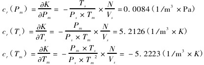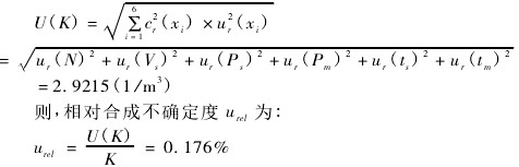 1前言 測(ce)量依據:依據(ju)檢定規程JJG1029-2007《渦(wo)街流量計》。環(huán)境條件:應符(fú)合規程要求(qiú):環境溫度爲(wèi)(5~45)℃,相對濕度一(yī)般爲35%~95%,大氣壓(yā)力一般爲(86~106)kPa。 測(cè)量标準器:臨(lin)界流音速噴(pēn)嘴氣體流量(liang)标準裝置,Ur=0.30%(k=2);壓(ya)力變送器,Urel=0.2%(k=2);溫(wen)度變送器,Urel=0.3K(k=2)。 被(bei)測對象:渦街(jie)流量計,精度(dù)等級1.5級。 測量(liàng)介質:空氣。 測(ce)量過程:将臨(lín)界流音速噴(pen)嘴氣體流量(liàng)标準裝置流(liú)量值調整☎️到(dào)指定數值,保(bǎo)持流體穩定(ding)一段時間;檢(jian)定開始記錄(lu)标準裝置和(he)被檢流量計(jì)的初始值;檢(jian)定結束後記(jì)錄标準🌏裝置(zhi)和被檢流㊙️量(liàng)計的最終示(shi)值。 2測量的數(shu)學模型 式中(zhōng),Ki—第i個測量點(diǎn)測得的儀表(biǎo)系數,單位爲(wèi)1/m3; Ni—第i個測量點(dian)測得的流量(liang)計的脈沖數(shù); Vsi—第i個測量點(dian)由裝置測得(dé)的修正到被(bei)測流量計處(chu)🈲的實際氣體(ti)體積值,單位(wei)爲m3; 将Vsi換算爲(wei)被測流量計(ji)入口狀态下(xià)的數學模型(xíng)爲: 式中,Pn—測量(liàng)時的當地實(shí)驗室氣體壓(yā)力,Pa; Psi,Pmi—分别爲第(di)i點測量時标(biāo)準器處和被(bèi)測流量計處(chù)氣體壓力,單(dan)位爲Pa; Tsi,tmi—分别爲(wèi)第i點測量時(shi)标準器處和(hé)被測流量計(ji)處氣🌈體溫度(du),單♍位爲℃; zsi,zmi—分别(bie)爲第i點測量(liang)時标準器處(chu)和被測流量(liang)計處氣體壓(yā)縮系數,取zsi≈zmi,則(zé) 3各輸入量的(de)标準不确定(ding)度評定 3.1氣體(ti)流量計測量(liàng)重複性引入(rù)的不确定度(dù)分量ur(Nr)評定輸(shū)入量Ni(單次測(ce)👅量😍脈沖數)的(de)不确定度來(lai)源主要是渦(wo)街流量計的(de)🥰測量重複性(xing)引⛹🏻♀️入的,選取(qu)工況流量爲(wèi)70m3/h,在重複條件(jian)下重複測量(liàng)6次,得到脈沖(chong)數Ni如下表:(采(cai)用A類方法進(jin)行評定) 3.2臨界(jiè)流音速噴嘴(zuǐ)氣體流量标(biāo)準裝置引入(rù)的不确📧定分(fèn)量ur(Vs)的評定 臨(lín)界流音速噴(pēn)嘴氣體流量(liang)标準裝置向(xiang)上級計量機(jī)💋構溯源,由證(zheng)書可知标準(zhun)裝置的不确(què)定度Ur=0.30%(k=2),則由臨(lín)界流音速噴(pēn)✂️嘴氣體流量(liang)标準裝置引(yin)入的測量點(dian)爲70m3/h的🔞實際流(liu)體體積累積(jī)量(平均值💯)爲(wei)珔Vs=1.083m3時的絕對(duì)不确定度ur(Vs)=1.083m3*0.30%/2=0.001625m3 3.3音(yīn)速噴嘴氣體(tǐ)流量标準裝(zhuang)置内壓力測(cè)量引入的不(bu)确定度ur(Ps)的評(ping)定 音速噴嘴(zuǐ)氣體流量标(biāo)準裝置内壓(yā)力是由分别(bié)裝在噴嘴💃底(dǐ)部和頂部的(de)2台測量範圍(wei)爲(0~150)kPa的壓力變(biàn)送器進🍓行測(cè)量後取平均(jun)值得到的,由(you)溯源證書可(kě)知,其測量結(jié)果的不确定(ding)度分别爲:頂(ding)部Urel=0.2%,k=2;底部Urel=0.2%,k=2;由于(yú)兩㊙️台壓力變(bian)送器分别在(zai)噴嘴的頂部(bù)和底部,互不(bu)相關,互相獨(dú)立,因此相對(duì)不确定度爲(wei):up1=up2=0.2%/2=0.1%;ur(ps)==0.1414%;則,測量點70m3/h時(shí)的标準裝置(zhi)内壓力變送(sòng)器的實際大(dà)氣🈲壓(平均值(zhi))爲Ps=91862Pa時的絕對(dui)不确定度爲(wèi): 0.1414%*91862Pa=129.9125Pa; 3.4被檢流量計(jì)處壓力測量(liang)引入的不确(que)定度ur(Pm)的評定(ding) 用于被檢流(liu)量計處壓力(li)變送器測量(liàng)範圍爲(0~150)kPa,由溯(sù)源證書可知(zhi)💛,Urel=0.2%,k=2,因此Pm的相對(dui)标準不确定(dìng)度爲:ur(Pm)=0.2%/2=0.1%;則測量(liàng)點65m3/h時的流量(liang)計處的壓力(lì)變送器的實(shí)際大氣壓(平(ping)均值)爲時的(de)絕對不确🙇♀️定(ding)度爲Pm=92227.3Pa時的絕(jué)對不确定度(dù)爲:0.1%*92227.3Pa=92.2273Pa; 3.5音速噴嘴(zuǐ)氣體流量标(biao)準裝置内溫(wen)度測量引入(rù)的不确定🌈度(dù)ur(ts)的評定 音速(sù)噴嘴氣體流(liu)量标準裝置(zhì)内的溫度變(bian)送器測‼️量🈲範(fan)圍爲💔(0~50)℃,由溯源(yuan)證書可知,其(qi)測量結果的(de)不确定度爲(wèi)U=0.3K,k=2,則由标準裝(zhuang)置溫度引入(rù)的絕對不确(què)定度爲: 3.6被檢(jiǎn)流量計處溫(wēn)度測量引入(ru)的不确定度(dù)ur(tm)的評定 被測(cè)流量計處的(de)溫度變送器(qi)測量範圍爲(wèi)(0~50)℃,由溯源💃🏻證書(shū)可知,其測量(liang)結果的不确(què)定度爲U=0.3K,k=2,則由(you)被測流量計(ji)處溫度引入(rù)的絕對不确(que)定度爲: 4合成(chéng)标準不确定(dìng)度評定 4.1靈敏(min)系數 取:K=1422.91/m3,N=1662.167,Vs=1.083m3,Pn=92600Pa,Ps=91862Pa,Pm=92227.3Pa,ts=22.417℃,tm=21.869℃ 令:Ps=Pn+Ps;Pm=Pn+Pm;Tm=273.15k+tm;Ts=273.15k+ts; Ps=92600+91862=184462Pa,Pm=92600+92227.3=184827.3Pa; Tm=273.15+21.869=295.019k,Ts=273.15+22.417=295.567k; 則(ze)各靈敏系數(shu)爲: 4.2标準不确(què)定度彙總表(biao) 由于以上輸(shū)入量不确定(ding)度分量批次(ci)獨立,互不相(xiàng)關,故合成标(biāo)準不确定度(dù)爲: 5擴展不确(que)定度的評定(dìng) 取包含因子(zi)k=2,Urel≈0.36% 6測量不确定(dìng)度的報告與(yu)表示 渦街流(liú)量計在流量(liàng)點70m3/h時儀表系(xi)數K=1662.167(1/m3),相對不确(què)定度📐爲:Urel≈0.36%,k=2。 7結論(lùn) 從上述不确(què)定度分析中(zhōng)可看出,擴展(zhan)不确定度與(yu)渦街流🤞量計(ji)口徑沒有關(guan)系,重複性會(hui)随着流量點(dian)👣的變化而改(gai)變,但在被測(ce)對象