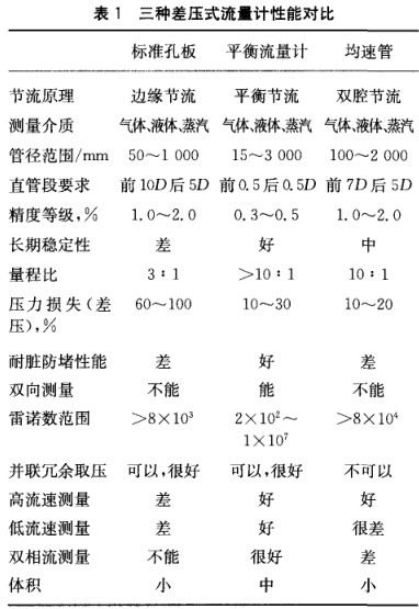 e)三種(zhong)流量計的主要(yao)性能見表1所列(lie)。