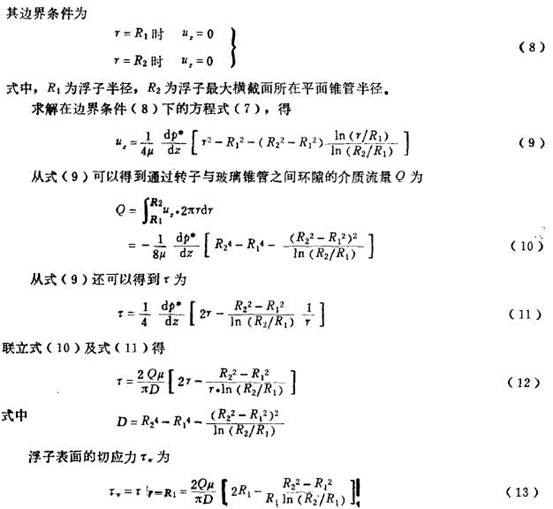 假設浮(fú)子處于(yu)某一平(píng)衡位置(zhi)時,浮子(zǐ)與管壁(bi)間流體(ti)流動爲(wei)層流,有(you)