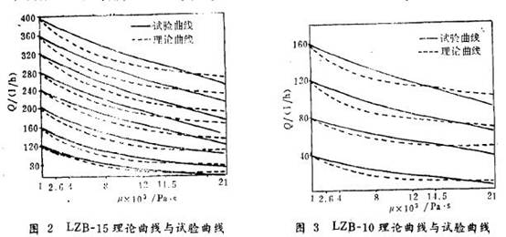 實驗采(cai)用國産(chan)LZB-15 LZB-10 LZB-6玻璃轉(zhuan)子流量(liàng)計,每種(zhǒng)各實驗(yàn)2台.沒個(gè)流量刻(ke)🌈度在每(mei)個粘度(du)值時測(ce)量3次取(qǔ)平均,實(shi)驗結果(guǒ)見圖🔴2 3 4的(de)實線.