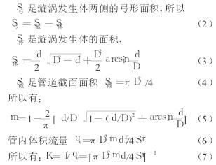 m———漩渦(wo)發生體兩側(cè)弓形面積與(yu)管道橫截