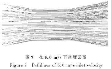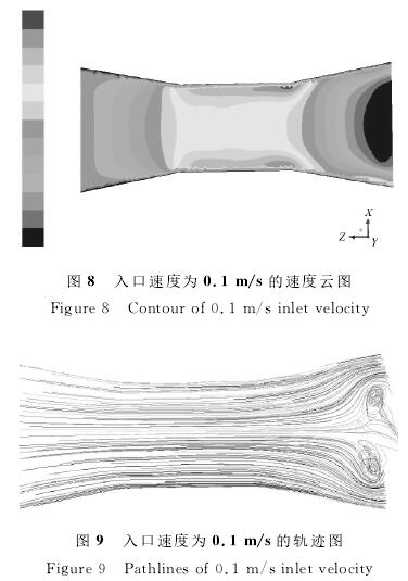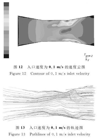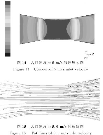 【摘(zhai)要】通過ICEMCFD軟件将局(jú)部截面變爲橢圓(yuán)形的異徑導流💔筒(tǒng)進🌈行了三維建模(mó),使用Fluent對不同入口(kou)速度下的👉流線場(chang)與速度🙇♀️分布🏃🏻♂️進行(háng)仿真計算,建立了(le)不同結構的導流(liú)筒所适用的速度(du)範圍.結果⁉️表明,速(su)度的大小和橢圓(yuán)截面離心率對流(liu)場産生的👈影響較(jiao)大.當速度減小或(huo)離心率變大時,導(dao)流筒尾部漸擴管(guan)✏️容易發生回流,緻(zhì)使流場紊亂.本研(yan)究能爲橢圓形✂️管(guan)道電磁流量計的(de)結構設計提供參(cān)考方案,爲設計合(he)理的導流筒提✊供(gong)理論依據. 電磁流(liú)量計 是工業過程(chéng)中用于計量導電(dian)性流體體積流量(liàng)的🌐儀🤩表[1],當前☎️國内(nèi)使用大多電磁流(liu)量計爲圓形截面(mian)導流筒.然而,電磁(cí)流量計對被測管(guǎn)道内的流場有一(yi)定的✉️要求,流場的(de)不💛穩定會✏️使得流(liú)量計示值不穩定(dìng),緻使測量誤差加(jiā)大[2-3].爲了解決這些(xiē)問題,本文提出橢(tuǒ)圓形截面管道設(shè)計方案. 針對橫截(jie)面爲不同離心率(lü)橢圓形的導流筒(tong),對在👈不同入口速(su)度下流場的流動(dong)性與速度分布進(jin)行Fluent仿真,欲爲合理(lǐ)💔的導流筒🌈提供理(li)論依據. 1異徑管結(jie)構的電磁理論分(fen)析 電磁流量計是(shi)基于法拉第電磁(ci)感應定律而開發(fā)的計量儀表[8].通電(dian)後的勵磁線圈在(zai)導流筒垂直方位(wèi)産生磁感應強度(du)爲B的工作磁場,待(dài)導電流體穿過時(shi),在液體兩側産生(sheng)感應電動勢E,通過(guò)對相應的電動勢(shì)進行信号處理而(er)實現體積流量的(de)準确測🈲量.感應電(diàn)動勢大小爲 E=BVD.(1) 式(1)中(zhōng):B爲工作磁場中的(de)磁感應強度;V爲導(dǎo)電液體流⭕速;D爲測(cè)量導管内徑. 導電(diàn)流體的速度V與工(gong)作磁場内的磁感(gan)應強度B都是有方(fāng)向性✍️的矢量,但各(gè)質點的速度爲非(fei)均勻分布,當流體(ti)的流速很🐅小時,會(hui)産生很小感應電(dian)動勢,與噪音混合(he)後使得測🐇量誤差(cha)🛀🏻增大,從♻️而影響到(dao)設🚶備的穩定性和(he)可靠性.其中E的數(shu)值由電極測量,單(dan)位時間内管道流(liú)量計算🧑🏽🤝🧑🏻公式爲 在(zai)電磁流量計的勵(lì)磁線圈中,電流爲(wei)I,匝數爲N,穿過工作(zuo)區🔱域的磁路長度(du)均值爲L,可得磁阻(zu)Rm與磁通勢💃🏻F爲 式中(zhong)S爲磁路的平均面(miàn)積,μ爲介質磁導率(lü).由磁場歐㊙️姆定律(lü)[9]可得❤️磁通量f 由(6)式(shi)可知,磁感應強度(dù)B與磁路長度平均(jun)值L成反比,與通過(guò)勵磁線圈的電流(liu)I成正比.相比起均(jun)勻的圓形管道,橢(tuo)😘圓導流筒内的工(gong)作磁場縮小了L值(zhi),在産生同等磁感(gan)應強度B的條件下(xià),勵磁線圈中的電(diàn)流❤️将小于前者,從(cong)而可降低電磁流(liu)量計的功耗. 2Fluent模型(xing)建立與參數設置(zhì) 使用ICEMCFD建立橢圓截(jie)面導流筒的模型(xing).導流筒的中間部(bu)分✔️爲橢圓管,兩側(cè)均爲橢圓形漸變(biàn)爲圓形的漸👨❤️👨擴管(guǎn).導流筒半長軸與(yu)X軸平行,長度35mm,半短(duǎn)軸與Y軸平行,長度(dù)28mm,短長半軸之比爲(wei)4/5,橢圓離心率❌爲0.60,長(zhang)88mm.兩端漸✏️擴管最外(wài)側圓形的半徑爲(wei)50mm,各長81mm.導流筒總長(zhang)250mm.該模‼️型的對象爲(wei)在中間直管段具(jù)有均勻磁場分布(bù)的㊙️橢圓截面管道(dào)🏃♂️的電磁流量計将(jiāng)導流筒兩端分别(bié)✂️定義爲出口與出(chū)口.流體在入口邊(biān)界以固定速度🌈垂(chui)🔅直與入口邊界流(liú)🏒入,在出口邊界自(zì)由流出,忽略重力(li).定義其他區域爲(wei)壁面,最後以四面(mian)體結構對👄模型進(jin)行網格劃分,如圖(tú)1所示.單元格數☁️量(liàng)爲204萬,網格質量評(ping)價🌂系數爲:0.65~0.70(2.5%);0.70~0.90(8.6%);0.90~1.0(86.2%).該三維(wéi)模型網格質量能(neng)夠滿足精度和收(shōu)斂要求.文中其它(ta)結構的三維模型(xing)網格,其類型與上(shàng)述一緻,網格質量(liang)基本相同. 設置模型(xíng)爲k-epsilon湍流模型[10],模拟(nǐ)對象爲液體水,仿(páng)真将以入口流速(sù)分别爲小流速0.1m/s、0.3m/s與(yu)大流速5.0m/s的條件下(xia)進行. 3速度場仿真(zhen)結果分析 以不同(tong)進口速度對該結(jié)構導流筒進行流(liú)場仿真,求💋解🏃🏻後使(shǐ)用軟件提取數據(ju).由于磁場方向平(píng)行于Y軸,故圖2至🔞圖(tú)15是在選取了與Y軸(zhóu)垂直的XOZ坐标平面(mian),并觀察速度雲與(yu)流線分🔅布圖,計算(suan)結果🐪如下. 3.1小流速(sù)下的仿真分析 取(qǔ)流入速度爲0.1m/s、0.3m/s,設置(zhi)仿真計算的叠代(dai)步數爲300,過程中分(fèn)别在🐕第211步、第186步時(shí)計算結果收斂,流(liú)量計流道🌍區域内(nei)可視爲穩态的定(ding)常流動.管内速度(dù)雲圖如圖2、圖3,流線(xiàn)圖如圖4、圖5. 由(yóu)圖2、圖3可知,在進口(kou)速度爲0.1m/s與0.3m/s條件下(xia),速度雲圖無‼️明顯(xian)差别,平面直管段(duàn)的速度分布的上(shang)下對稱性較高,靠(kào)管✍️壁速度小,中間(jiān)大,出口流體向兩(liang)側流動🔴,中間區流(liu)速小🍓. 如圖4、圖5,當入(ru)口速度爲0.1m/s時,末端(duan)發生回流現象,但(dan)中間🚩直管🐅段流場(chang)平穩,沒有受到尾(wei)部回流影響.當初(chū)始速度增加爲0.3m/s時(s