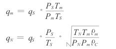 有(you)些經過(guò)标準刻(kè)度的流(liú)量計實(shí)際使用(yong)狀态與(yǔ)刻🐆度狀(zhuang)态不同(tong),使用時(shí)需要換(huan)算,實際(jì)使用時(shí)測量流(liú)量計前(qián)壓🌍力和(hé)溫度,流(liu)量計前(qián)實際流(liú)量用qm表(biao)示,公式(shì)如下: