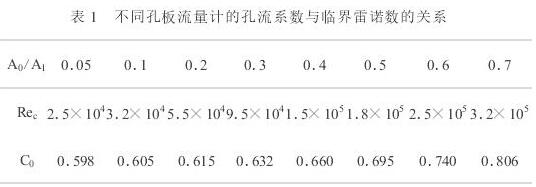 1标準(zhun)孔闆流量系數(shu)C0與Re、A0/A1的關系