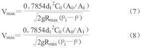 因此,孔(kong)闆流量計在測(cè)定流量時有一(yi)允許測量範圍(wéi),此範圍又受R值(zhi)Rmin與Rmax的影響。在确(que)定的孔闆流量(liang)計情況下(即A0/A1一(yi)定),由R值的範圍(wei)可以确定流量(liàng)V的範圍Vmax與Vmin: