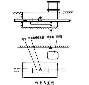 通常(chang),電磁流量計 的(de)流量傳感器要(yao)求與其連接的(de)管道一起有良(liang)好的接地;但當(dāng)管網有大雜散(san)電流影響電磁(ci)流量計正常🏃測(ce)量時,卻必須反(fan)其道而行之,電(diàn)磁流量傳感器(qi)和與其連接的(de)管道之間要電(dian)氣絕🌈緣。 某市自(zi)來水公司安裝(zhuāng)了兩台900nm 大口徑(jing)電磁流量計 ,于(yú)1997年啓用。其中一(yi)台運行正常,另(ling)一台在1一2小時(shi)周期⚽内儀表輸(shū)出出現O%一50%滿度(dù)值波動的不正(zhèng)常現象。分析管(guǎn)網運行狀況,排(pái)除📞了流動波動(dong)的可能性,認爲(wèi)是流量測量方(fang)面的問題。 一、儀(yí)表安裝和周圍(wéi)環境 勘察現場(chǎng),儀表布置及周(zhou)圍環境如下圖(tu)所示。電磁♻️流量(liang)計🈲安裝、電氣連(lian)接和接地基本(ben)符合《使用說明(míng)書》規定的要求(qiú)。與流量傳☎️感器(qi)連接的管道是(shi)有水泥襯裏的(de)鋼管,流量傳感(gan)器上🌍下遊緊接(jie)一段長0.5m的無襯(chen)裏的短鋼管。電(dian)磁流量轉換器(qi)與傳感器相距(ju)🐪約10m。 有一幾百kVA的(de)三相變壓器安(an)裝在電磁流量(liàng)計`附近,它離流(liu)量傳💃感器和流(liú)量轉換器的距(ju)離分别約8m和2m. 二(er)、故障原因分析(xi)和采取措施 1.故(gu)障分析 根據分(fen)析,故障原因可(kě)能有以下兩種(zhong):①大功率變壓器(qì)🙇♀️所産💃生㊙️的🛀磁場(chang)幹擾;②管道上雜(zá)散電流幹擾。要(yao)證明是否是變(bian)壓器磁場幹擾(rao)影響,因要關閉(bi)變壓器涉及面(miàn)廣,故安排爲第(di)二步檢查,首先(xian)檢查是否是管(guan)道上雜散電流(liu)幹擾。檢查方法(fa)是電磁流量傳(chuán)感器不加激磁(cí)電流,用示波器(qi)測兩電極間的(de)電勢,其值應該(gai)爲零。測🤩得波形(xing)畸變的🐕交流電(dian)勢,峰值Vpp殊高達(dá)1V,當儀表🐇輸出波(bo)動時,前置放大(da)器的輸出亦出(chu)現飽和現象;而(er)通常電❌磁流量(liàng)計的流量🌈信号(hao)僅爲幾個mV,前置(zhì)放💜大器應處于(yú)線性範圍。初步(bù)判斷管網上雜(zá)散電流幹擾是(shi)主要原因。 2.采取(qu)措施 絕緣緊接(jiē)流量傳感器的(de)兩短管和上下(xià)遊管道的電氣(qi)連接,連👈接法蘭(lán)間的螺栓墊以(yi)絕緣材料墊圈(quan),且在🐉螺栓上套(tào)🔱上絕❗緣套管。該(gai)工作可以在不(bú)停流運行狀态(tài)下進行,28隻螺栓(shuān)逐個換上墊圈(quān)和增套絕緣套(tao)管。 三、效果 電磁(cí)流量傳感器與(yu)工藝管道電氣(qì)絕緣而與被測(cè)水流處于同電(dian)位。儀表投人運(yun)行,其輸出顯示(shi)穩定正常,排除(chu)了電力變壓器(qi)磁場幹擾影響(xiang)的可能性♊。間接(jie)驗證了相隔8m的(de)數百kVA的電力變(biàn)壓器對電磁流(liú)量計的影響,在(zài)通常的情況下(xia)可以忽略💘。 爲進(jin)一步尋找雜散(san)電流幹擾源頭(tou),在A點接人電流(liú)表,測得電流60mA. AC;在(zài)B點接人電流表(biao),電流爲零。判斷(duan)幹擾⚽源頭來自(zì)流量🐅傳感器的(de)上遊。