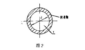 有(you)些礦漿往往容(rong)易在測量管道(dao)内壁上造成結(jie)疤現象,如氧化(huà)鋁生産過程中(zhōng)的漿液不僅含(han)有堿性物質和(he)固體顆粒,而且(qiě)礦漿在90℃以上的(de)高溫條件輸送(sòng),這時就容易在(zài)管壁上附着料(liào)漿造成嚴重的(de)結疤現象。這時(shí),用戶可選用有(yǒu)光滑的聚四氟(fu)乙烯襯裏的電(diàn)磁流量計,才能(neng)避免這種結疤(ba)現象。當管内壁(bì)上附着物如圖(tú)2所示時,将造成(chéng)測量誤差。