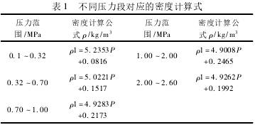解決這(zhè)個矛盾(dùn)的方法(fǎ)是分段(duàn)拟合,即(jí)在不同(tong)的壓✨力(li)段采用(yòng)✔️不同的(de)系數和(he)常數。表(biao)1所示爲(wèi)不同壓(ya)力段對(dui)🧑🏾🤝🧑🏼應的⚽不(bu)同密度(dù)計算式(shì)[4]。