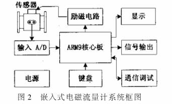 電磁流(liú)量計由(yóu)測量裝(zhuāng)置和電(dian)路兩部(bu)分組成(chéng),電路🈲部(bu)分主要(yào)由⭐檢測(ce)輸入模(mo)塊、勵磁(ci)輸出模(mó)塊、流量(liàng)輸出模(mó)塊、圖形(xing)顯示模(mo)塊、鍵☎️盤(pán)模塊、通(tōng)信及調(diào)試接口(kǒu)、電源模(mo)❗塊、以及(jí)🥵最重要(yào)的基于(yú)ARM9嵌入式(shi)系統[2]的(de)核心闆(pǎn)組成。圖(tu)2給出了(le)嵌入式(shì)電磁流(liu)量計的(de)系統框(kuàng)圖。圖2嵌(qian)入式電(diàn)磁流量(liàng)計系統(tǒng)框圖。