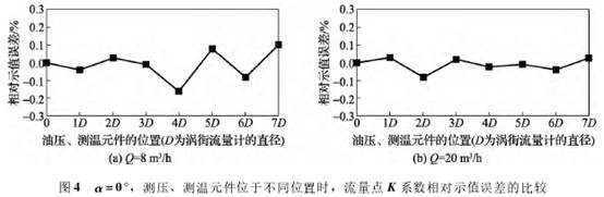 摘要:在對(dui)渦街流量(liàng)計 檢定時(shi),可能需要(yào)使用測壓(yā)、測溫元件(jiàn)去測量流(liú)經流量計(jì)的流體溫(wēn)度、壓力,以(yi)保證流量(liàng)計計量的(de)準确性。然(rán)而部分插(cha)入式測壓(yā)、測溫元件(jiàn)是需要插(chā)入流體中(zhōng),這樣相當(dāng)于在流量(liàng)計的渦街(jiē)發生體後(hou)面📧的旋渦(wō)中在放置(zhi)了一鈍體(tǐ),此鈍體可(ke)能會影響(xiang)已經形成(cheng)的旋🏃♂️渦,也(yě)可能會影(yǐng)響旋渦脫(tuō)落的頻率(lü),從而有可(kě)能影響流(liú)量計的計(jì)量性能。 1概(gai)述 流體流(liu)經靜止的(de)鈍物體時(shi),會在物體(tǐ)後面形成(chéng)規則的旋(xuán)渦脫落。自(zi)從1878年VincencStrouhal測量(liang)出旋渦脫(tuō)落頻率和(hé)1911年VonKarman研究雙(shuang)排旋渦脫(tuō)落的穩定(dìng)性分析以(yi)來,旋渦脫(tuo)落變成了(le)流體力學(xué)的基⛷️本問(wen)題。然而渦(wo)街流量計(jì)正是利用(yòng)了這個原(yuán)理,流體流(liú)過旋渦發(fa)生☂️體時,會(hui)在🙇♀️發生體(tǐ)下遊兩側(ce)交替地分(fen)離釋放出(chū)兩列有規(gui)律💋的交錯(cuo)排列的旋(xuan)渦,即卡門(men)渦街[1],并使(shǐ)用傳感器(qi)測出旋渦(wō)脫落的頻(pin)率,通過😘式(shi)(1): 進行換算(suàn),以達到對(duì)流量的計(ji)量(式中,b爲(wei)發生體的(de)✂️寬度;u爲流(liú)經流量計(jì)的流體平(píng)均速度;f爲(wèi)旋渦的頻(pin)率;Sr爲斯特(te)🍉羅哈爾數(shù)🚶♀️)[2]。根據JJG1029—2007渦街(jie)流量計檢(jian)定規程的(de)要求,在👨❤️👨對(duì)渦街🤟流量(liàng)計檢定或(huo)校準的過(guo)程中,如需(xū)💋要測量流(liú)經流量計(jì)的流體溫(wēn)🈲度或者流(liu)🧡體壓力時(shi),可以在流(liú)量計下遊(yóu)(2-5)D或者☔(2-7)D處分(fen)别設置測(ce)溫孔、測壓(yā)孔[3](其中D爲(wei)流量計口(kou)徑)(圖1)。在實(shí)際工作中(zhōng),對渦街流(liu)量計檢測(cè)💛時,測溫或(huò)測壓都是(shì)使用傳感(gǎn)器,而且大(dà)💃🏻多數的傳(chuan)感器是需(xū)🌐要插入管(guan)道内部;如(ru)果進行此(cǐ)操作,相當(dāng)于在流量(liang)計渦街發(fa)生體的後(hou)面旋♊渦中(zhong)在放置了(le)一鈍體,此(ci)鈍體可能(néng)會影響已(yǐ)經形成的(de)旋渦,也可(ke)能會影響(xiang)旋渦脫🐅落(luo)的頻率,從(cong)而有可能(néng)影響流量(liang)計的計量(liàng)性能。本文(wén)就是研究(jiu)測溫、測壓(ya)傳感器安(an)😘裝的位置(zhì)l,以及和旋(xuan)渦發生體(ti)形成的角(jiǎo)度α對渦街(jie)流量計計(jì)量性能的(de)影響(圖2)。 2實驗模(mo)型和實驗(yan)參數 選擇(ze)精度1.0級、口(kou)徑爲DN50的渦(wo)街流量計(ji)做實驗,根(gēn)據說明⭐書(shu),流量計的(de)可測範圍(wéi)爲2.2~73m3/h、可保證(zhèng)精度的測(cè)量範圍爲(wei)3.3~73m3/h[2],流量計的(de)輸出方式(shì)設置爲脈(mo)沖輸出;另(ling)外,選擇一(yī)長度15cm,直徑(jing)爲6mm的不鏽(xiù)鋼小圓柱(zhù),用作模拟(ni)插入式測(cè)壓、測🏃🏻溫元(yuan)件(以下簡(jiǎn)稱爲模拟(ni)元件),以方(fang)便實驗。 在(zài)進行實驗(yàn)前,先使用(yòng)若幹模拟(nǐ)元件将管(guǎn)道上的♌小(xiao)🔴孔堵住,密(mì)封以防止(zhǐ)漏水,但模(mó)拟元件不(bu)得插入管(guan)道中,保證(zheng)模拟元件(jiàn)的一端和(hé)管道壁平(ping)齊,并在模(mo)拟元❓件上(shàng)做好記号(hào),以保證重(zhòng)複實驗時(shi),對實驗結(jie)果的影響(xiang)盡量減小(xiǎo)到最小。實(shí)驗時,先對(dui)無模拟🚶♀️元(yuán)件影響的(de)狀态進行(háng)檢測,流量(liàng)點爲qmax和0.40qmax(其(qí)中qmax=20.0m3/h),每個流(liú)量點測量(liang)5次,取平均(jun)值進行比(bǐ)較。在α分别(bie)選🐇擇了0°、45°、90°三(san)個不同角(jiao)度時💋,在渦(wo)街流量計(ji)下遊1D~7D的距(jù)離插入♊模(mo)拟元件,插(chā)入深度爲(wèi)0.5D,測量各種(zhong)實驗狀态(tai)下渦街流(liú)量計各流(liú)量點的K系(xi)數,以研究(jiū)l,α對實驗結(jie)果的影響(xiǎng)。實驗裝置(zhi)如圖3所示(shì),按照JJG1029—2007《渦街(jie)流量計🐕檢(jiǎn)定規程☎️》的(de)要求進行(háng)檢定。 3參數(shu)l、α對渦街流(liu)量計示值(zhí)誤差的影(yǐng)響 通過測(cè)量,取得各(gè)種實驗狀(zhuàng)态下的K系(xì)數,選擇無(wu)模拟元件(jian)影響的實(shi)驗K系數爲(wei)基礎數據(jù),與其他實(shí)驗狀态下(xià)的🈲實驗結(jié)果進行對(duì)比。 如圖4所(suǒ)示,圖中橫(heng)坐标爲0,表(biǎo)示無模拟(ni)元件影響(xiǎng),1D~7D表示模拟(nǐ)元件所放(fang)的位置,縱(zòng)坐标表示(shì)渦街流量(liang)計🙇🏻K系數的(de)相對示值(zhi)誤差。從圖(tu)4(a)中可以看(kan)出,當α=0°、流量(liàng)點Q=8m3/h,模拟元(yuan)件在3D~7D時‼️,對(duì)流量計的(de)K系🤟數影響(xiang)比較大,最(zui)大影響接(jiē)近0.2%。而當流(liú)量增加至(zhi)Q=20m3/h時,模拟元(yuán)件對流量(liàng)計K系數影(ying)響比較平(ping)穩,保持在(zai)±0.1%以内。 當α增(zeng)加至45°,流量(liang)點Q=8m3/h,模拟元(yuán)件位于不(bú)同位置時(shí),K系數🙇♀️的👣相(xiang)💰對🙇🏻示值誤(wù)差位于±0.1%之(zhi)間,表示模(mo)拟元件放(fang)置不同位(wèi)置,可以導(dǎo)緻K系數變(bian)🈲大或變小(xiao)(圖5(a))。在大流(liu)量情況下(xià)(Q=20m3/h),從圖5(b)中,可(kě)🔞以發現K系(xì)數幾乎都(dou)是比實際(ji)值變大的(de),且變♌化幅(fú)度基本位(wèi)于0%~0.1%範🌂