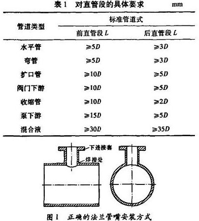 在管道(dào)開孔安裝取(qǔ)壓短管時,焊(hàn)接取壓短管(guan)應注意垂直(zhí)方💋向,要求焊(han)接後短管軸(zhou)線與管道軸(zhóu)線夾角爲90。,且(qie)法蘭短管連(lián)😘接的延長線(xian)垂直通過管(guan)道橫截面的(de)圓心,這樣能(néng)保證流體與(yu)磁場❓垂直,見(jian)圖1。