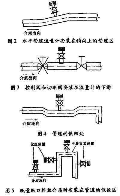 爲了(le)保障測量精(jīng)度,傳感器應(yīng)避免在容易(yì)産生真空、氣(qi)體、渦🔞流等地(di)方安裝。傳感(gǎn)器與智能變(bian)送器之間的(de)通訊💋電纜要(yao)避開電動機(jī)等強電設備(bei)。建議安💋裝在(zài)圖2一圖5所示(shì)位置。