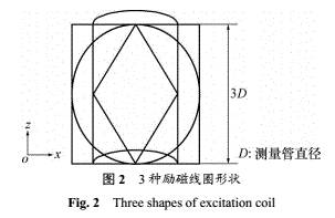 勵(lì)磁線圈的形(xíng)狀常見的有(yǒu)圓形、菱形和(hé)馬鞍形3種。對(dui)相同用料下(xia)不同形狀勵(li)磁線圈産生(shēng)的磁場的強(qiang)度以及均勻(yun)度進行仿真(zhen)比較。3種勵磁(ci)線圈的形狀(zhuàng)如圖2所示。