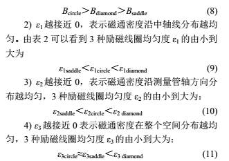 表1所示爲(wèi)在勵磁線圈(quan)軸向長度相(xiang)同、用料相同(tong)及勵磁條件(jiàn)相同下進行(hang)仿真所得結(jie)果。對3種線圈(quan)的磁場進行(háng)計算,各自對(dui)應的3個指标(biao)ε,e2和83如表2所示(shì)。.
