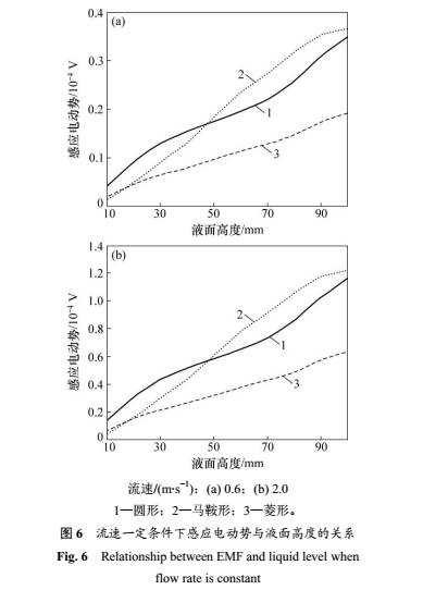 2感應電動勢(shì)與被測液體(ti)流速及液面(miàn)高度的關系(xì)