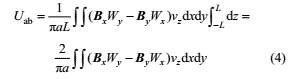 其中:下标(biāo)a和b代表電極(jí)兩端:a爲測量(liàng)管半徑;v爲流(liú)體速度:B爲磁(cí)感應強度:W爲(wèi)權函數。當B和(hé)流體速度v都(dou)是常數,權函(hán)數W爲1時,式(1)化(hua)爲: