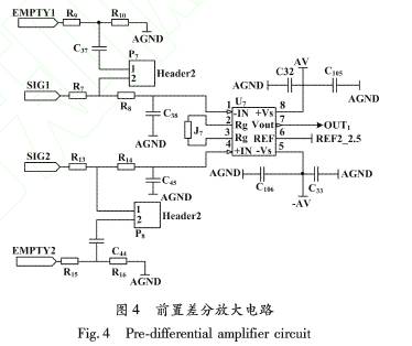 前(qián)置差分(fen)放大電(diàn)路主要(yao)實現信(xìn)号的放(fang)大和共(gòng)模噪聲(sheng)💋的抑⛷️制(zhì)。電路采(cǎi)用具有(you)高共模(mo)抑制比(bi)、高增益(yi)精度、低(di)失調漂(piao)移、低增(zeng)益🏒漂移(yi)的精密(mi)儀用放(fang)大器🌈。前(qian)置差分(fèn)放大電(diàn)路如圖(tú)4所示。.