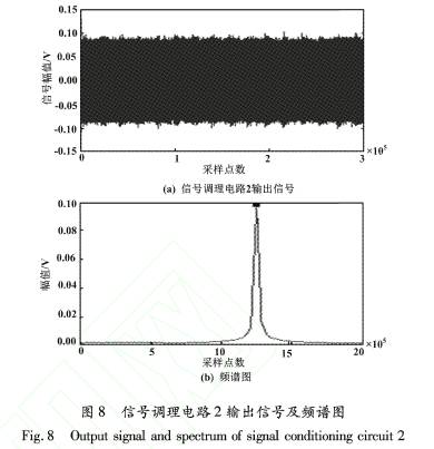 信号(hao)調理電(dian)路2輸出(chū)信号及(jí)頻譜圖(tu)如圖8所(suǒ)示。