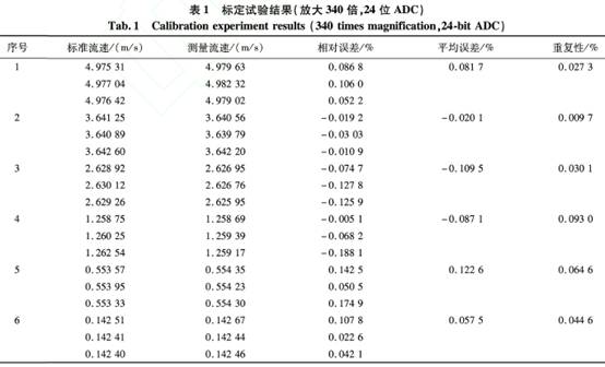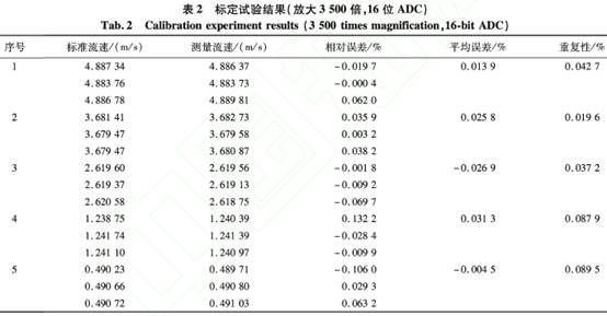 在流(liu)速爲0.5~5m/s的(de)範圍内(nèi),共選取(qǔ)了5個标(biāo)定點,并(bing)通過示(shi)值誤差(cha)拟合方(fāng)法計算(suàn)出儀表(biǎo)系數。然(rán)後,驗證(zheng)電磁流(liu)量計的(de)精度。放(fang)大3500倍、16位(wei)ADC水流量(liang)标定試(shi)驗結果(guǒ)如表2所(suǒ)示。