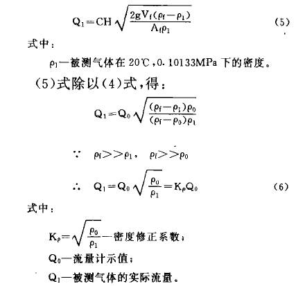 前己叙述(shu),用于測量氣(qi)體的轉子流(liu)量計出廠時(shí)是在工業基(ji)準狀态(293K,0.10133MPa)下用(yong)空氣作爲介(jie)質進行刻度(du)的。根據(3)式可(ke)得出: