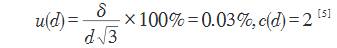 其次(cì),測量管(guan)徑引入(ru)的不确(que)定度。根(gen)據不同(tong)的測量(liang)範圍,其(qi)最大允(yǔn)許誤差(chà)也有一(yi)定的差(chà)異,測量(liang)範圍♉在(zai)0~150的,其最(zui)大允許(xǔ)誤差主(zhǔ)要是±0.02,而(ér)測量範(fàn)圍在1500~2000,其(qi)最㊙️大的(de)允許誤(wù)差爲±0.14。實(shí)測的管(guǎn)徑大緻(zhì)爲81mm,-工作(zuò)人員根(gen)據矩形(xíng)分布進(jìn)行考慮(lǜ),K=√3,因此,對(duì)于測量(liang)管‼️徑的(de)不确🐅定(ding)度的計(jì)算👈公式(shi)爲: