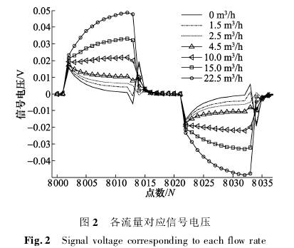 由于勵(lì)磁電流沒(méi)有達到穩(wen)态,與之對(duì)應的信号(hào)電壓也處(chu)☂️于非穩态(tài)過程,主要(yào)包含流量(liàng)分量和微(wei)分幹擾兩(liǎng)部分,但是(shi),實際采集(ji)到的傳感(gan)器信号引(yin)入了直流(liu)偏置和50Hz工(gōng)頻幹擾,爲(wèi)此,對信号(hao)電壓進行(háng)梳狀帶通(tong)濾波處理(lǐ)以消除直(zhí)流偏置和(hé)工頻幹擾(rǎo)。各流量下(xià)信号電壓(yā)梳狀帶通(tong)濾波後的(de)結果如圖(tu)3所⭐示,信号(hao)電壓幅☀️值(zhí)由低到高(gāo)對應的流(liu)量依次💃🏻爲(wèi)0~22.5m3/h。其中,圖2中(zhong)信号電壓(ya)與圖1中前(qián)2個半周期(qi)的勵磁電(diàn)流相對應(yīng),爲正負兩(liang)個半周期(qī)。可以看出(chu)🤞,在非穩态(tài)上升過程(chéng)中🈚,信号電(diàn)壓的幅值(zhí)與管道内(nei)流量大小(xiao)仍㊙️是相關(guan)的。當流量(liàng)爲零時,信(xin)号電壓主(zhu)要爲微分(fen)幹⭐擾。