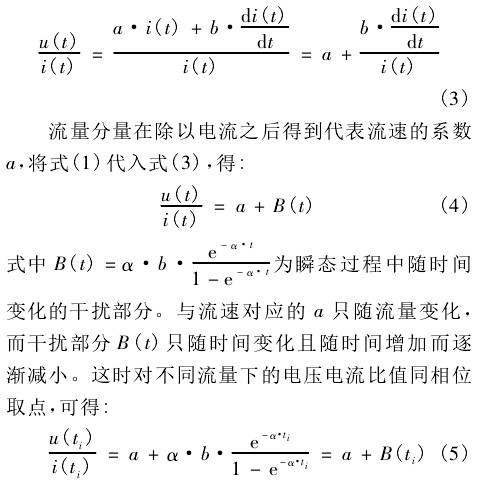 針對瞬态(tai)測量,通過(guo)對信号電(dian)壓的分析(xi),确定了信(xin)号電壓👉和(he)勵✍️磁電流(liu)的比值與(yǔ)流量的線(xian)性關系,提(tí)出了基于(yú)電壓電流(liú)比值的處(chu)理方法。瞬(shùn)态測量勵(lì)磁時間短(duan),勵磁電流(liu)及其感應(ying)産生的磁(ci)場均未進(jìn)入穩态。在(zài)🥰勵磁電流(liu)的上升過(guo)🐅程中,微分(fèn)幹擾隻随(suí)♈時間變化(huà),而流量分(fen)量受到勵(li)磁電流的(de)影響,其大(da)小不僅與(yǔ)流速💞有關(guan),還随時間(jian)變化。爲了(le)消除勵磁(cí)❄️電流對流(liú)量分量的(de)影響,同時(shi)減小電流(liu)波動帶來(lai)的磁場波(bō)動對信号(hao)🈲産生的影(yǐng)響,将信号(hào)電壓比上(shàng)勵磁電流(liú),即式(2)比上(shang)式✔️(1),得到: