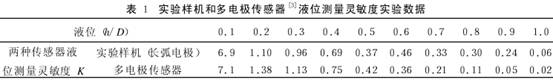 式(9)中Vi爲電(diàn)激勵輸入,D爲管道(dào)圓管道直.徑。當管(guan)内液位由hu變爲h時(shí)♋,電極測量信号由(you)V。變爲V1,K表征了傳感(gan)器對液位變化的(de)靈敏度。将長弧形(xíng)電極傳感器與多(duo)電極傳💃🏻感器網進(jin)行比較實驗。根據(ju)實驗測量數據,按(àn)式(9)計算得到的靈(líng)敏度K如表🔞1數據所(suo)示。當在高充滿度(du)狀态下😍,液位相對(duì)高度從0.6~0.9變化時,長(zhang)弧形電極傳感器(qì)對液位的檢測靈(ling)敏度高于多電極(jí)傳感器。