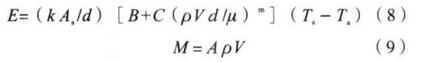 式中:k爲(wei)流體導(dao)熱系數(shù);A,爲被加(jia)熱元件(jiàn)面積;B爲(wei)傳感器(qì)支撐件(jiàn)的自然(ran)對流、熱(rè)輻射和(hé)熱傳導(dao)總的熱(re)傳遞常(chang)數(相對(dui)于介質(zhi)的強制(zhì)對流,傳(chuán)感器的(de)自然對(dui)流、熱輻(fu)射和熱(re)傳導影(ying)響極小(xiao));C爲.常數(shu);d爲傳感(gǎn)器直徑(jìng);μ爲流體(ti)黏度;m爲(wèi)系數(一(yi)般m≥0.3);T,爲元(yuan)件表面(miàn)溫度;T爲(wèi)介質溫(wen)度;A爲管(guan)道有效(xiao)截面積(ji)。