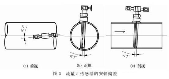 爲(wei)了保證(zhèng)流量計(jì)的測量(liàng)精度,傳(chuan)感器安(an)裝時應(yīng)将偏差(cha)⭕控制在(zai)一定範(fàn)圍(見圖(tú)1)。傳感器(qi)的總壓(yā)孔必須(xū)❓正對流(liu)向,偏差(chà)不大于(yu)7°[現圖1(a)];傳(chuán)感器應(ying)沿管道(dào)直徑方(fang)向插✔️入(rù)到底,安(an)裝偏💜差(cha)控制如(rú)圖1(b)和♊(c)_國(guó).所示。.