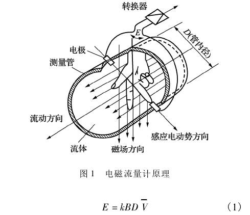 電磁(cí)流量計的基本(běn)原理是法拉第(dì)電磁感應定律(lü),即導體在磁場(chǎng)中切割磁力線(xian)運動時在其兩(liǎng)端産生感💃🏻應電(dian)動勢。電磁流量(liàng)計原理如圖1所(suo)示,導電性液體(tǐ)在❌垂直于㊙️磁場(chǎng)的非磁性測量(liàng)管内流動,與流(liu)✌️動方向垂💁直的(de)方向.上産生與(yǔ)流量成比例的(de)感應♉電勢,電動(dòng)勢的方向按“弗(fú)🏒來明右手規則(zé)”,其值見式(1)和式(shì)(2)