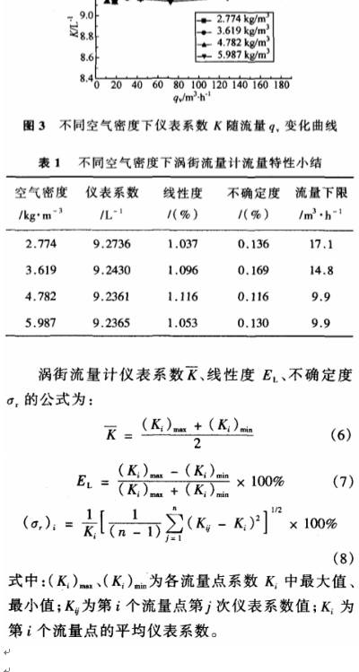根據(ju)試驗得(de)到的數(shu)據,可繪(huì)制出如(ru)圖3不同(tóng)空氣密(mi)度下渦(wo)🤩街儀表(biǎo)系數随(suí)流量變(biàn)化曲線(xiàn),并得到(dào)渦街流(liú)量計的(de)流量💜特(tè)性見表(biao)1。