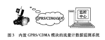當(dāng)圖2中流量計(ji)内嵌GPRS/CDMA模塊時(shí),流量計即可(ke)直接通過✔️GPRS/CDMA連(lian)接到數據⚽監(jiān)控中心,省略(lue)數據采集器(qì)媒介。如圖3所(suo)示。