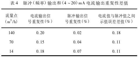 由表(biao)3得出,在140m3/h、70m3/h、14m3/h三(sān)個流量點(dian)下脈沖(頻(pin)率)輸出和(hé)(4~20)mA電流輸出(chu)方式☔不同(tóng)對流量計(jì)的所體現(xiàn)的誤差也(yě)不一樣。可(kě)以看到此(cǐ)😍次試驗電(dian)💔流信号輸(shu)出要比脈(mò)沖輸出誤(wu)差要偏大(da)0.3%以上。