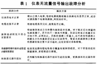 (1)儀表無(wú)流量信号(hao)輸出,原因(yīn)及解決方(fāng)案如表。1所(suo)示