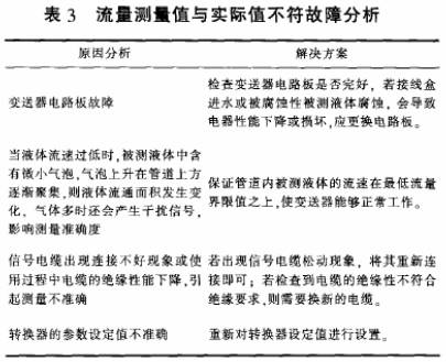 (3)流量測(cè)量值與實(shi)際值不符(fú),原因及解(jie)決方案如(ru)表3所示,