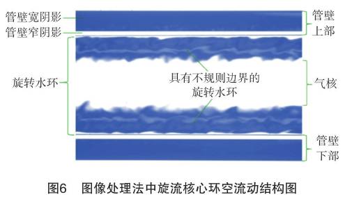 利用圖(tú)像處理(li)技術,提(ti)取環狀(zhuang)流的相(xiang)界面,進(jin)而計算(suan)空隙率(lü),圖像采(cǎi)集原理(li)如圖5所(suo)示。圖像(xiàng)采集過(guò)程中,采(cǎi)用背光(guang)光源照(zhao)射法,使(shi)用高速(sù)攝像儀(yi)采集照(zhào)🤟片,高速(sù)攝像儀(yi)型号爲(wei)NACMEMRECAMfxK3,像素爲(wèi)480×640。在每種(zhong)工況下(xià),以500Hz的頻(pin)率采集(ji)2s,共1000張照(zhao)片取氣(qì)柱直徑(jing)平均值(zhi)作爲計(jì)算💔截面(miàn)相含率(lü)的值。本(běn)研究㊙️采(cai)用相分(fèn)離法實(shí)現的旋(xuán)流核心(xīn)環空💜流(liú)💃動中氣(qì)液界面(miàn)清晰光(guang)滑(結構(gou)見圖6),從(cong)而降低(dī)🌈了圖像(xiang)處理的(de)難度并(bing)減小了(le)空隙率(lǜ)的❗測量(liàng)誤差。