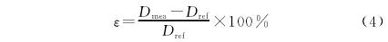 式中:ε爲(wei)相對誤(wù)差,%;Dmea爲液(yè)體體積(jī)流量測(ce)量值,m3/h;Dref爲(wei)液體體(ti)積流量(liàng)參比值(zhí),m3/h。