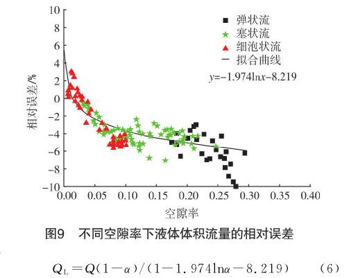圖9顯示(shì)了不同(tóng)空隙率(lǜ)流量測(cè)量的相(xiàng)對誤差(chà)。由圖9可(ke)以🌂看出(chū),測👨❤️👨量誤(wu)差随着(zhe)空隙率(lü)增加而(er)增加,且(qiě)具有很(hěn)強的規(gui)律性。導(dao)緻這種(zhǒng)現象的(de)原因可(kě)能是因(yin)爲與單(dān)相流相(xiang)比,旋轉(zhuǎn)環狀流(liú)中存在(zài)不導電(diàn)氣芯,使(shi)導電相(xiàng)流通截(jié)面發生(sheng)改變,由(you)單相流(liu)中的圓(yuan)形變爲(wèi)兩相流(liu)中的環(huan)形,造成(cheng)儀表常(cháng)數✂️發生(shēng)改變。由(you)圖9還可(kě)看出,通(tong)過關于(yú)截面相(xiàng)含率的(de)校正,可(ke)得到更(geng)精确的(de)❗測量值(zhí)計算式(shi)如下: