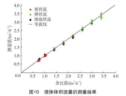 圖(tú)10爲按照(zhào)圖9的拟(ni)合曲線(xiàn)校正後(hòu)的測量(liang)結果圖(tú)。由圖10可(ke)以看出(chu),測量值(zhi)與參比(bi)值吻合(hé)良好。相(xiàng)對誤差(chà)最大不(bu)超過士(shì)5%,平均誤(wu)差爲1.1%。綜(zong)上所述(shù),可以利(li)用電磁(cí)流量🌈計(jì)測量🚶旋(xuán)轉環狀(zhuàng)流中的(de)液體🤞流(liú)量。