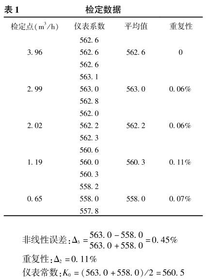 在精度(dù)爲0.1級靜态容積(jī)法水流量标準(zhun)裝置上對一台(tai)LW-15渦輪流量計進(jìn)行了計量檢定(ding),檢定數據如表(biao)1所💰示。