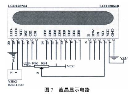 本電路采(cai)用12864液晶來實(shi)時顯示輸出(chū)的流體質量(liàng)流量和密度(dù)的大小。該液(yè)晶具有屏幕(mù)反應速度快(kuài)、對比度高、功(gong)耗低等優點(dian),可以實現友(yǒu)好的人機交(jiao)互。爲了簡化(hua)電路,采用串(chuan)口連接。在單(dan)片機的控制(zhì)下,按照要求(qiú)的格式顯示(shì)接收到的數(shu)據和字符信(xìn)息。圖7爲液晶(jing)顯示的連接(jiē)圖。其中D0~D7爲數(shù)據口,R/W爲液晶(jing)讀寫信号,E是(shì)使能端。