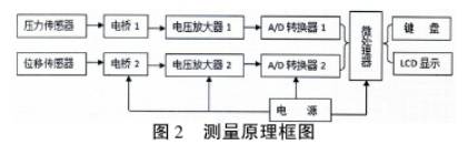 爲了便于(yú)測量,将差壓(yā)信号進行放(fang)大,濾波,在利(lì)用微處理器(qi)進行控制,使(shǐ)之能方便記(jì)錄、存儲和顯(xian)示。在圖1中,利(li)用位移傳感(gan)器可以測量(liang)出節流裝置(zhi)11和22管壁處的(de)流體靜壓力(li),将壓力的變(biàn)化通過電橋(qiao)的作用,使之(zhī)轉換爲電壓(ya)的變化,爲了(le)便于微處理(lǐ)器能控制,将(jiang)其信号進行(háng)放大和模數(shu)轉換。由于要(yào)測量質量流(liu)量,在A處的壓(ya)力傳感器可(kě)以測量得到(dao)流體密度的(de)大小(測量密(mi)度的原理是(shì)A出的容積是(shi)标定已知的(de),邇過質量大(da)小除以容積(jī)即可以得到(dao))。由此得到測(cè)量原理框圖(tú)如圖2所示。