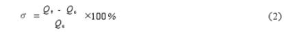 對渦街(jiē)流量計(ji)的測量(liàng)誤差用(yòng)式(2)來計(ji)算: