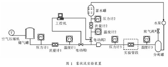 空氣(qì)壓縮機(jī)将空氣(qi)壓縮後(hou)送入儲(chǔ)氣罐,流(liu)量計1計(jì)量氣液(yè)混✂️合前(qian)儲氣罐(guàn)送入管(guǎn)道的氣(qì)體流量(liang)。蓄水罐(guàn)距離地(di)面30m提供(gong)實驗所(suo)需的液(yè)相,其流(liu)量由流(liu)量計2測(ce)得🐇。氣相(xiang)和🈲液相(xiang)經混和(hé)器混和(hé)後送入(rù)實驗管(guan)段,最後(hou)流入分(fèn)離罐将(jiang)水和空(kong)氣進行(háng)分離,空(kong)氣由放(fàng)氣閥排(pai)出,水由(yóu)水泵送(sòng)回蓄水(shui)罐循環(huan)使用。。工(gōng)控機對(duì)所有儀(yi)表數據(ju)進行采(cai)集和顯(xiǎn)示并對(duì)兩個電(dian)動調節(jiē)閥✉️進行(háng)控制,調(diào)節氣相(xiang)和液相(xiang)的流量(liàng)