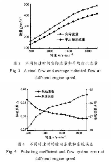 圖(tú)3示出了(le)發動機(jī)各轉速(sù)時的實(shi)際流量(liàng)和平均(jun)指示流(liú)量,圖4示(shi)出了發(fā)動機各(ge)轉速時(shí)的流量(liàng)脈動1系(xi)數和系(xì)統誤差(chà)。