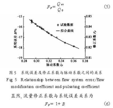 将上述(shu)結果整(zhěng)理後重(zhong)新畫在(zài)圖5中。圖(tu)中給出(chū).了系統(tǒng)誤差與(yǔ)脈動系(xi)數之間(jiān)的關系(xì),同時也(ye)給出了(le)所謂流(liú)量修正(zhèng)系數與(yǔ)脈動系(xi)數之間(jiān)的關系(xì),流量修(xiū):正系數(shu)F,爲