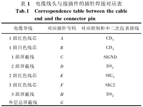 電纜線頭與接插(chā)件的插針焊接對(dui)應表如表1所示。